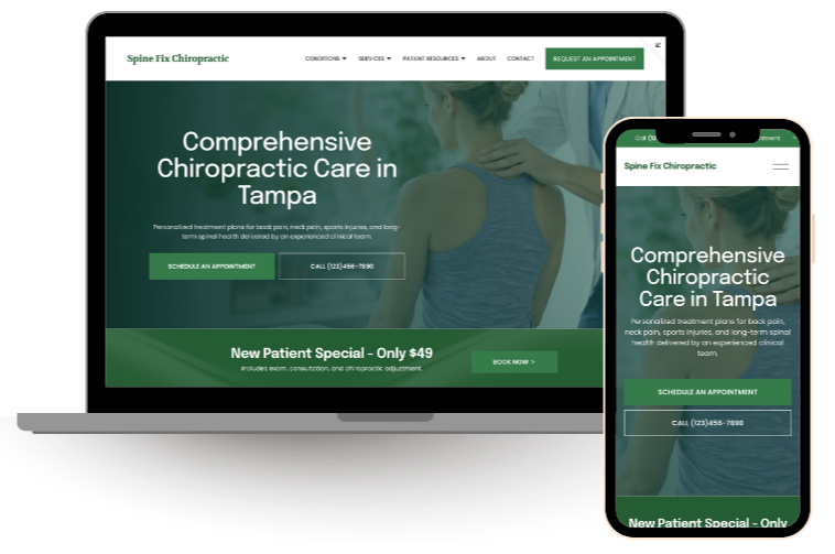 Built specifically for chiropractic practices. Clean, modern, mobile-optimized and structured to turn visitors into booked patients.